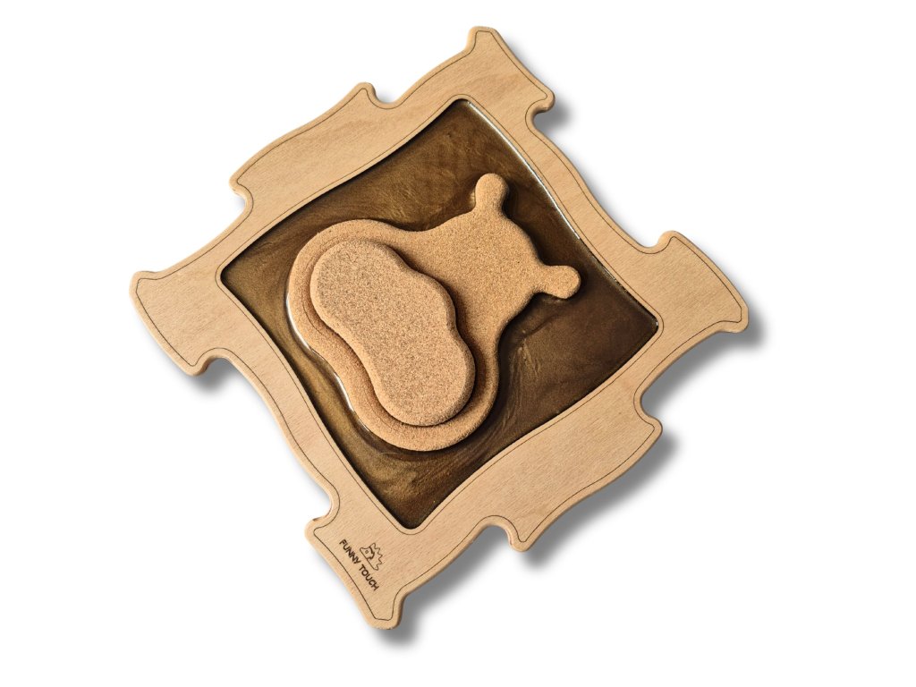 Hroch má oblejší tvar a větší vystouplý prvek, který nabízí příjemnou masáž a lehkou stimulaci. Působí hravě, ale zároveň nožky efektivně zapojuje. Korek je pružný a šetrný k dětské pokožce. Zalití do pryskyřice zajišťuje pevnost, hygienu a dlouhou životnost puzzlíku.