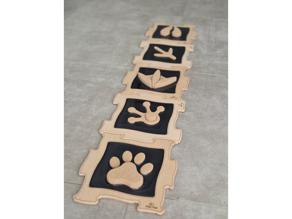 Při hraní děti hádají zvíře podle stopy, rozvíjejí jemnou motoriku a smyslové vnímání a učí se soustředění a trpělivosti. Díky senzomotorickému designu si mohou díly kombinovat do nekonečných variant a vytvářet vlastní příběhy a herní scenérie.