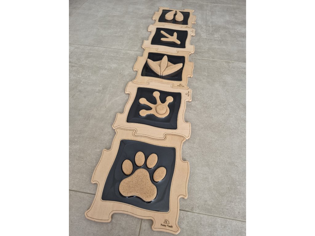 Děti při hře hádají zvíře podle stopy, rozvíjejí jemnou motoriku, koordinaci i smyslové vnímání. Senzomotorická puzzle podporuje hravé učení, kreativní kombinování dílů do nekonečna a motivuje děti ke hrám, které procvičují zrak, hmat i logiku.